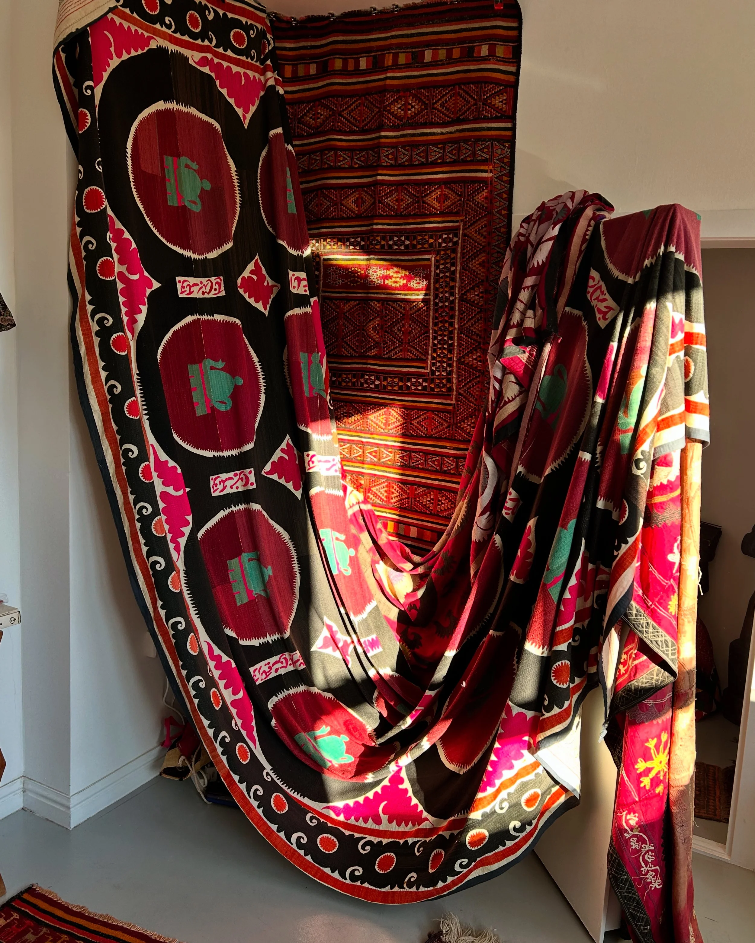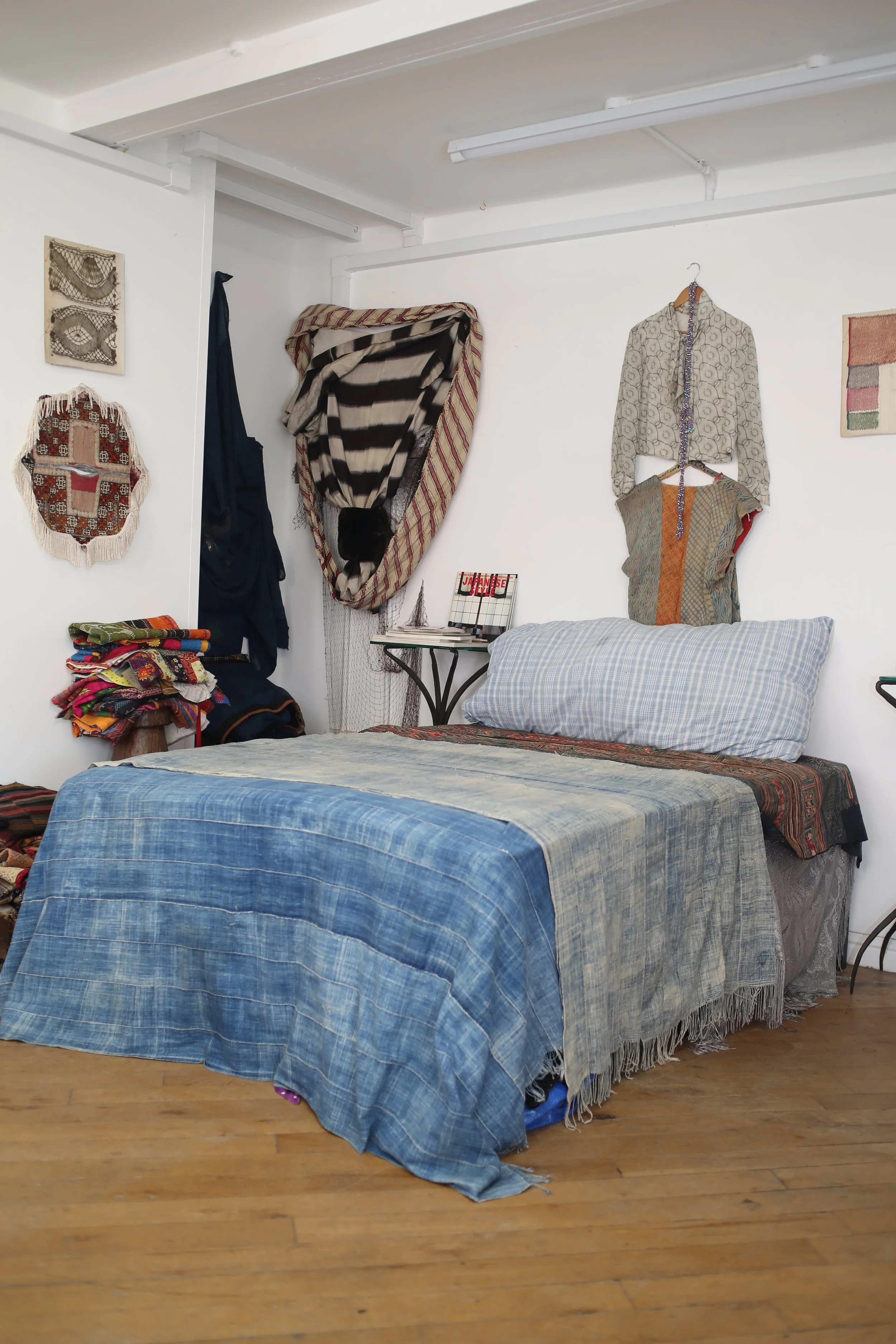 Using found vintage textiles and vintage clothing Jess creates visual displays in the showroom, which add softness and movement to otherwise static rooms.